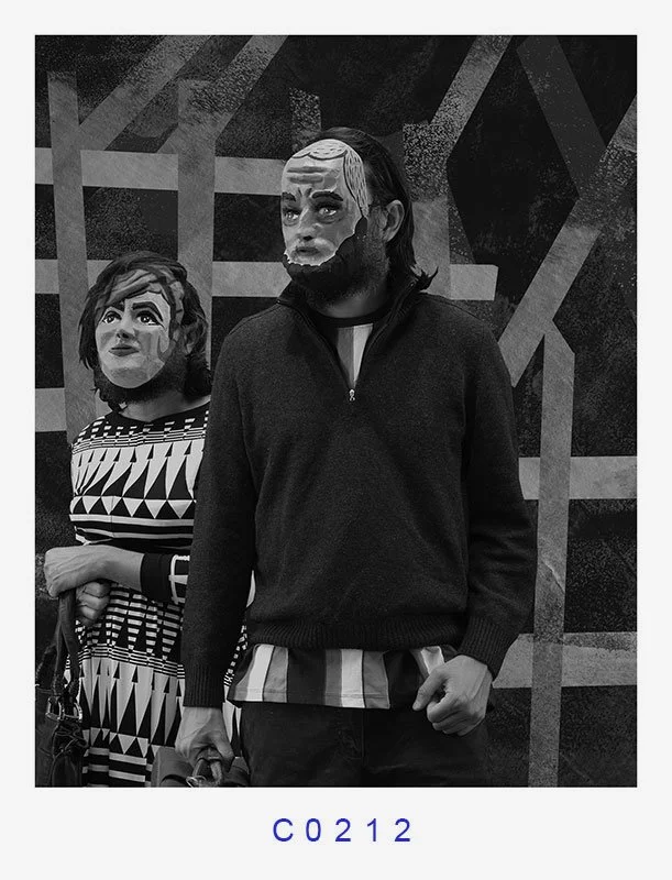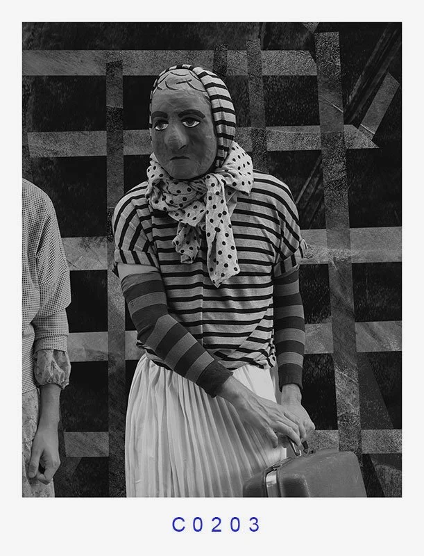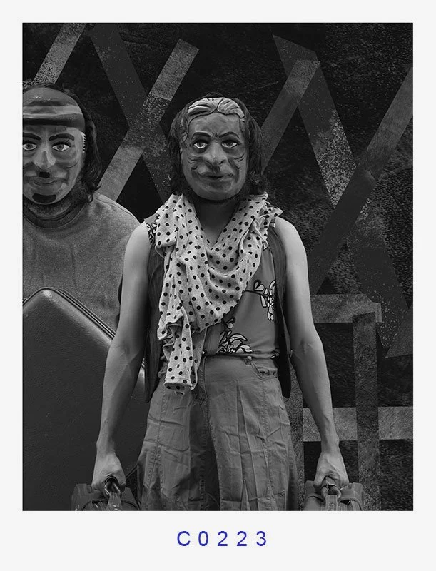 MARE MAGNVM: La llegada (The Arrival) is a striking photographic series that addresses the universal and timely issue of migration. The series features characters wearing papier-mâché masks, each of which covers their faces, making them appear as archetypal representatives of any diasporic population. The characters' identities are obscured, emphasizing the universality of the migrant experience, and each photograph is stamped with a number, evoking the process of being processed by an immigration entity.